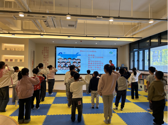 在10分钟的互动环节中,青马班学员表演校园欺凌、网络传谣、损坏公物三个情景剧,邀请小朋友扮演“小法官”判断对错并说明理由,深化其对违法行为的认知。随后,进行5分钟总结宣誓,带领全体小朋友起立宣读“普法小卫士宣誓词”,强化活动记忆;最后为积极参与问答的小朋友发放精美贴纸、小挂件等小奖品。